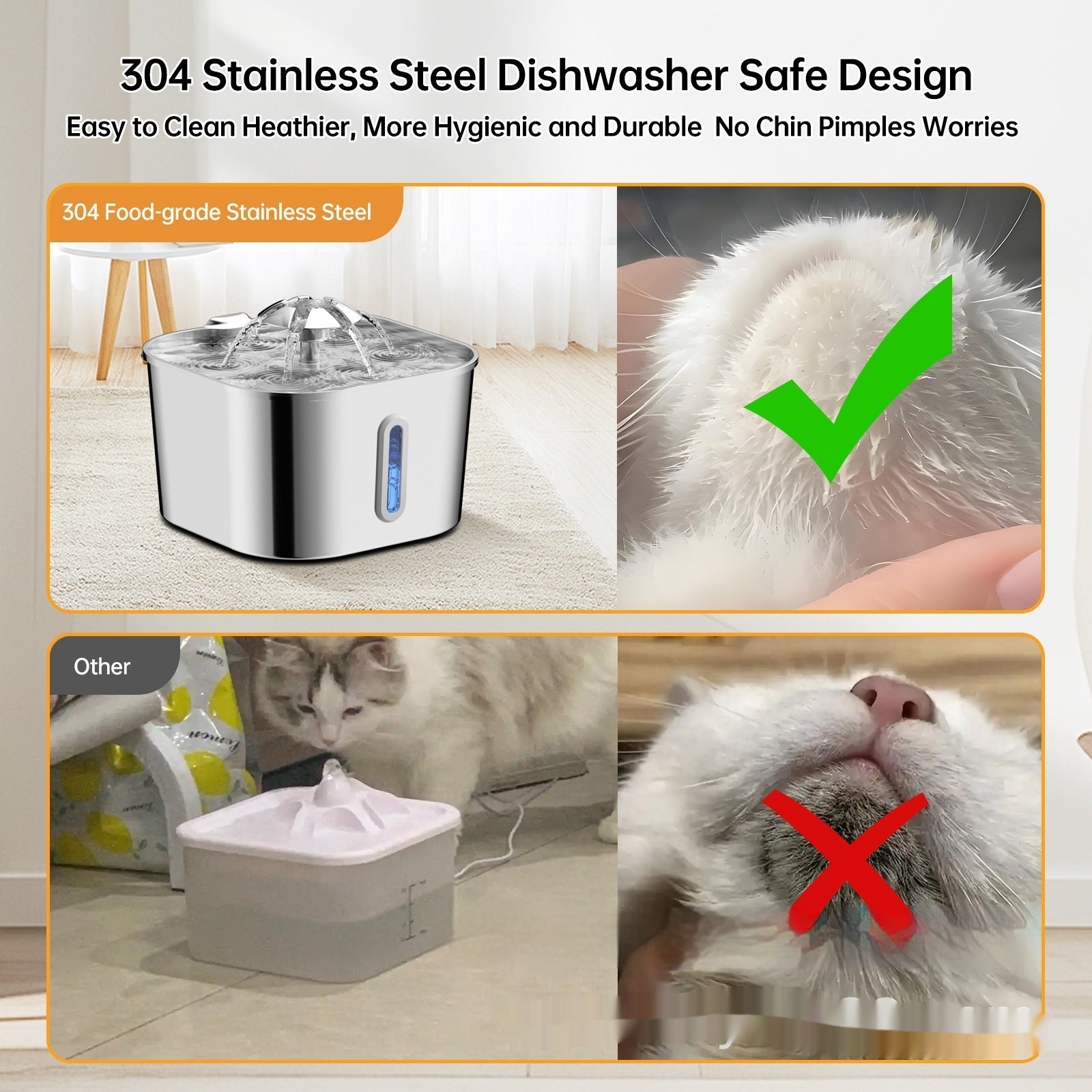 2.2L Stainless Steel Pet Cat Water Fountain Dogs And Cats Water Feeder